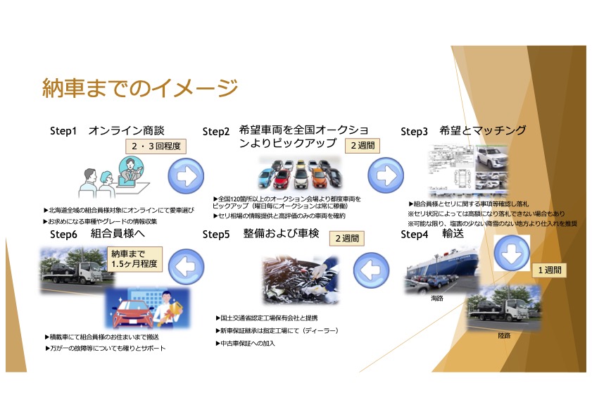 オンラインにてご面談させていただき、お探しのお車についてお話しを伺い全国120会場以上のオークション会場よりお探しいたします。
